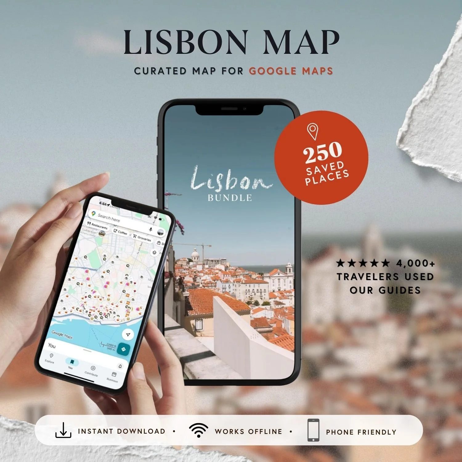 250+ hand-picked local spots: restaurants, coffee shops, pastries, boutiques, and hidden gems, already saved in your Google Maps. No tourist traps. Just the spots Lisbon locals actually go to.